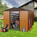 Lovtimber 10×8 FT Outdoor Storage Shed, Garden Tool House with Metal Floor Base, Double Sliding Doors, Air Vents, Storage Clearance for Backyard, Patio, Garage, Lawn, Coffee