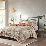 Madison Park Tangiers Quilt Modern Classic Design All Season, Breathable Coverlet Lightweight Bedding Set, Matching Shams, Decorative Pillow, King/Cal King(104″x94″), Circle Orange 6 Piece