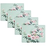 Laura Ashley Cork Placemats 16 x 12-inch for Kitchen and Dining Tables, Heat Resistant, Durable, Easy Clean, Set of 4, Blossom Branch
