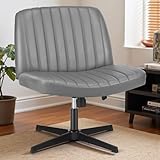 DUMOS Criss Cross Chair Wide Cross Legged Office Desk Vanity Chair PU Leather Armless Adjustable Swivel Chairs for Home Computer Task (Slate Gray)