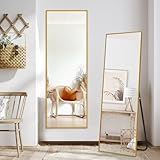 NicBex 64 x 21 Inch Full Length Mirror, Aluminum Alloy Frame Large Wall Mirror, Vanity Mirror, Bedroom Mirror, Dressing Mirror, Living Room Mirror, Gold, with Stand