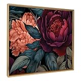 Kate and Laurel Sylvie Dark Academia Floral in Rich Jewel Tones Framed Canvas Wall Art by The Creative Bunch Studio, 31.5×41.5 Bright Gold, Modern Colorful Flower Art for Wall