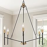 LALUZ Black and Gold Chandelier, 6-Light Mid-Century Modern Chandelier, 27“ Large Dining Room Chandelier Light Fixture with Candle Lamp Holder for Living Room, Bedroom, Kitchen, Foyer