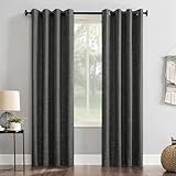 Sun Zero Brooks Burlap Weave Thermal Extreme Total Blackout Grommet Curtain Panel, 52″ x 96″, Coal