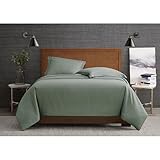 London Fog Garment Washed Solid Duvet Set Green Microfiber 3-Piece Full/Queen Duvet Set, Solid Themed, Adult and Teen, Oeko-TEX Certified