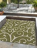 Unique Loom Outdoor Botanical Collection Area Rug – Curl (10′ 8″ Square, Green/ Ivory)