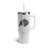 The Memory Company Officially Licensed NCAA 40oz White Rhinestone Tumbler – Stainless Steel Double Wall Vacuum Insulated Water Bottle, BPA-Free, Lid & Straw, University of Colorado, Boulder