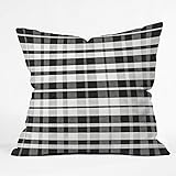 Deny Designs Monika Strigel Farmhouse Shabby New Gingham Black Checkered Plaid Indoor Throw Pillow, 16″ X 16″