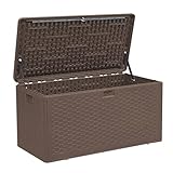 TARKARI Premium Pro Edition 73 Gallon Lockable Resin Deck Box, Waterproof & UV-Resistant Outdoor Storage Box for Outdoor Cushion Storage, Garden Tools & Pool Accessories Storage, Brown