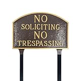 Montague Metal Products No Soliciting, No Trespassing Large Arch Statement Plaque with Lawn Stakes – Oil Rubbed/Gold