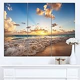 Design Art Sunrise on Beach of Caribbean Sea Large Seashore Canvas Artwork Print, 36×28-3 Panels