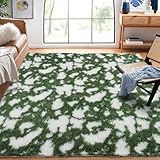 GarveeHome 6×9 Fluffy Shag Area Rugs for Bedroom Ultra-Soft Shaggy Fuzzy Bedside Rug Thick Plush Indoor Floor Carpet Cow Print Fluffy Rug for Kids Room Living Room Nursery Playroom Teens Dorm Green
