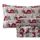 Elegant Comfort Luxuriously Soft 4-Piece Holiday Velvet Plush Flannel Sheet Set – Premium Quality – Cozy Warm, Christmas Fuzzy Velvet Flannel Fleece Deep Pocket Sheet Set – King, Snowybarn