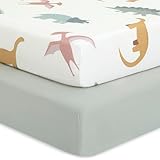 Evolur Rawrsome Light 2 Pack Crib Sheet, Fitted Crib Sheet for Standard Crib and Toddler Mattress, Soft and Breathable Crib Mattress Sheet