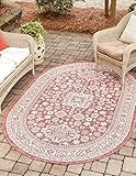 Unique Loom Outdoor Aztec Collection Area Rug – Chalca (7′ 10″ x 10′ Oval, Rust Red/ Ivory)