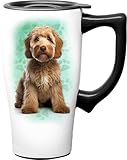 Spoontiques Doodle Ceramic Travel Coffee Mug with Lid and Handle – Spill Proof Lid – Double Walled Mug for Hot and Cold Beverages – Microwave and Dishwasher Safe