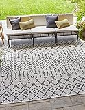 Unique Loom Outdoor Trellis Collection Area Rug – Tribal Trellis (10′ 8″ Square, Gray/ Black)