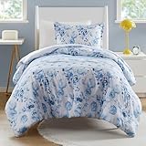 Intelligent Design Twin Duvet Cover Set, Vintage Floral & Stripes Design, Solid Reverse, All Seasons Soft Microfiber Lightweight & Breathable Duvet Cover, Sham, Christa, Twin/Twin XL Blue 2 Piece