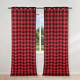 Simple Deluxe Buffalo Plaid Blackout Curtains Panels for Living Room, Bedroom Farmhouse Courtyard Style Room Darkening Thermal Insulated Kitchen Curtains, 37″ W x 95″ L, Black and Red