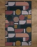 DEERLUX Modern Living Room Area Rug with Nonslip Backing, Abstract Geo Pattern, 8 x 10 Ft Large, Blue (QI003753.L)