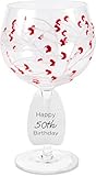 Pavilion Gift Company Pavilion-Red Sprout-24 Oz Hand Decorated Removable Happy 50th Birthd Wine Glass, 24 oz