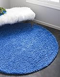 Unique Loom Solid Shag Collection Area Rug (7′ 1″ Round, Periwinkle Blue)