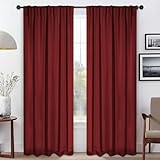 Superior Blackout Curtains, Room Darkening, Bedroom, Drapes, Kitchen, Living Room Window Accents, Sun Blocking, Thermal, 2 Pack, Solid Blackout Back Tab Curtains, Set of 2, 52″ x 72″, Sangria