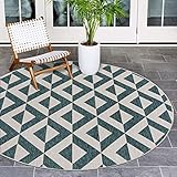 Unique Loom Outdoor Collection Area Rug – Napa (4′ 1″ Round, Teal/ Ivory)