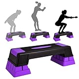 GYMAX 30” Aerobic Workout Stepper with Risers, 5’’ 7’’ 9’’ Adjustable Exercise Platform for Home Fitness, Non-slip Aerobic Training Stepper for Home/Gym (Purple)