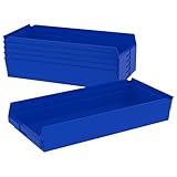 Akro-Mils 30174 Plastic Shelf Bins, Heavy Duty Storage Bins for Garage, Closet, and Drawer Organization, 24-Inch x 11-Inch x 4-Inch, Blue, 6-Pack