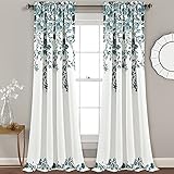 Lush Decor Tanisha Curtains – Light Filtering Window Panel Set, Pair – Floral Vine Print, Beautiful, Modern, Elegant Home Decor – 52″ W x 84″ L, Blue & Gray