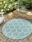 Unique Loom Outdoor Trellis Collection Area Rug – Trellis (Round 4′ 0″ x 4′ 0″, Aquamarine/ Gray)