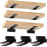 CONNOO 6 Pack Heavy Duty Thick Shelf L Brackets, 8 Inch Floating Hidden Shelf T Brackets, Metal Black L Brackets for Shelves Support DIY, Modern Iron Finish(1/5″)