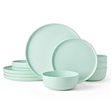 Mikasa Madison Pastel Bone China Lightweight Chip Resistant 12 Piece Dinnerware Set, Mint Green