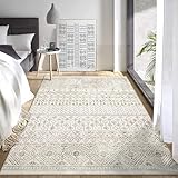 GarveeHome Modern Area Rug 4×6 Soft Carpet Indoor Boho Non Slip Distressed Vintage Diamond Rug for Living Room Bedroom Kitchen, Taupe 4′ x 6′