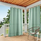 TOWN & COUNTRY BASICS Cabana Solid Heavyweight Indoor Outdoor Curtains, Light Filtering Opacity with Grommet Top, Water Repellent, 2-Pack Set, 54″x120″, Seafoam