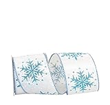 Reliant Ribbon Snowflakes Glitter Dazzle Wired Edge Ribbon, 2-1/2 Inch X 10 Yards, Turquoise
