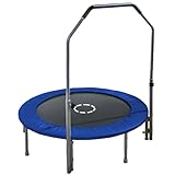 TruJump Mini Exercise Trampoline with Padded Spring Cover and Handlebar, 4FT, Blue