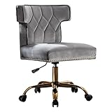 Recaceik Velvet Home Office Chair, Modern Adjustable Swivel Desk Chairs with High Back 360 Degree Castor Gold Wheels for Living Room/Bedroom/Office (Gray)