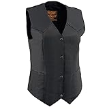 Milwaukee Leather MLL4545 Women’s Black Premium Leather Lightweight Classic 4-Snap V-Neck Motorcycle Rider Vest – 2X-Large