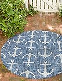 Unique Loom Outdoor Coastal Collection Area Rug – Ahoy (12′ Round Blue/Ivory)