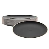 Restaurantware Moderna 10 Inch Premium Disposable Plates 40 Durable Plastic Plates For Parties – Gold-rimmed Heavy-duty Black Plastic Dinner Plates For Warm And Cold Foods Ideal For Restaurants