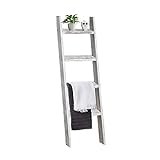 Natsukage Blanket Ladder Rustic Wooden Ladder Farmhouse Blanket Ladder Shelf for Living Room Bathroom Bedroom Wall Leaning Ladder Shelf Stand (48″ x 22″, Whitewashed) (SHL120W1-NAT-USAM022)