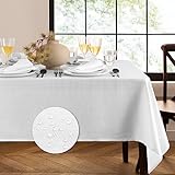 Elrene Home Fashions Laurel Solid Texture Water and Stain Resistant Tablecloth, 60″X102″ Rectangle, White