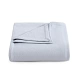 Tommy Hilfiger – Queen Cotton Blanket, Textured Pique Weave Bedding, Medium Weight Soft Blanket, Anti-Pilling & Fade Resistant, Ideal for Layering, Oeko-TEX Certified (Blue)
