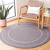 SAFAVIEH Bella Collection 7′ Round Silver/Ivory BEL151D Handmade Dotted Border Premium Wool Entryway Foyer Living Room Bedroom Kitchen Area Rug