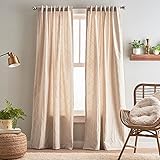 Peri Home Mallorca Embroidery Back Tab Window Curtain Panel Pair, 95″, Linen/White