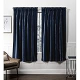 TOWN & COUNTRY LUXE Velour Solid Heavyweight Indoor Curtains, Light Filtering Opacity, Triple Pinch Pleat Top, Plush Velvet, 2-Pack Set, 27″x63″, Navy