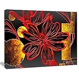 Designart Abstract Red Flower Painting Canvas Wall Artwork, 12″ H x 20″ W x 1″ D 1P