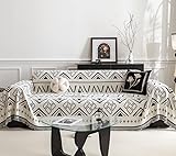 AMWAN Large 3 Cushions Beige Sofa Cover with Black Boho Geometric Chenille Aesthetic Couch Cover,Living Room Durable Slipcover for Dogs,Cats,L Shaped Sofa,Multifunctional Furniture Cover, 71″x134″